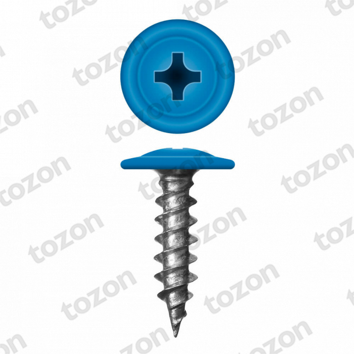 Саморез с прессшайбой голубой(острый)